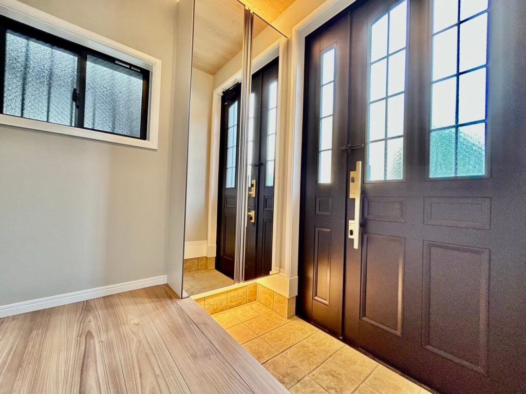 玄関は広めのスペースを確保し、収納と姿見を設置。